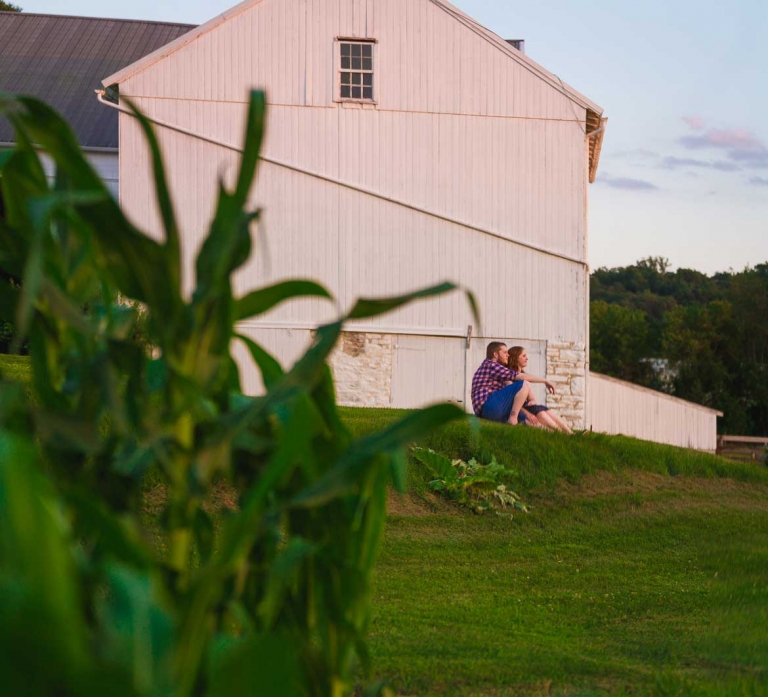Kim + Kevin are simply adorable. We were lucky enough to have the opportunity to photograph them at Kims family’s farm in Lancaster PA. Set back off the road and surrounded by fields it was breathtaking to spend the golden hour on these grounds. Along our way we met a new mama sheep with Disney Princess themed kids, a rooster, and your friendly farm cat. It was a blast getting to relax, even though it was technically work, with these two and getting acquainted with them before their winter wedding. We can’t wait for this December at the Eden!