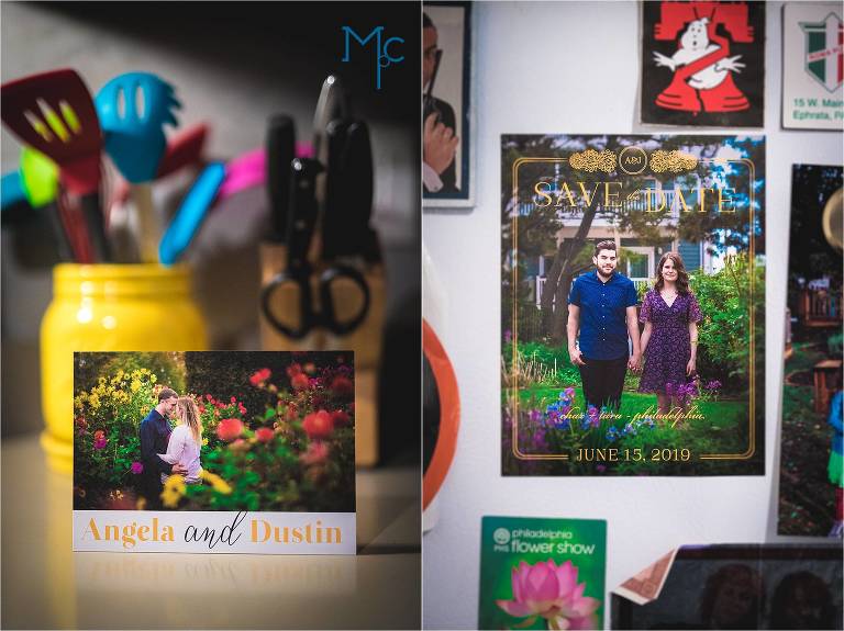 Left: Folded thank you card – the prints look amazing on these cards. Right: Save the Date Magnet : This design really catches my interest. I love how the lines and font can fit over any image and style. The magnet is thin and looks killer on the fridge 🙂