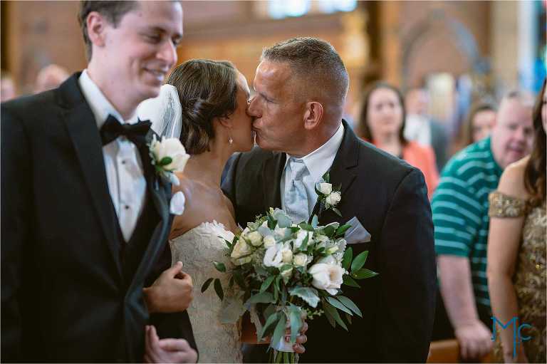 Finally returning to the blog is Kate + Rich of Peace Valley Park engagement fame!!  This time it was the real thing and they didn’t disappoint:)  We started with Kate who really set the tone for her day, inviting us into her family’s home in Riverton, NJ with ease and kindness. She made it so easy for us to get some truly special getting ready photos. And then headed over to meet up with Rich at the Church. We love a church with a good balcony where we have a birds eye view of the ceremony. Then we settled in for a nice long Catholic ceremony:)