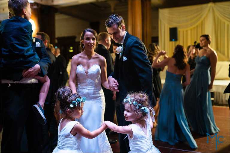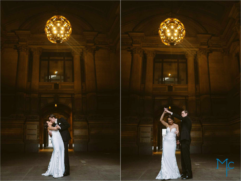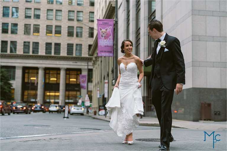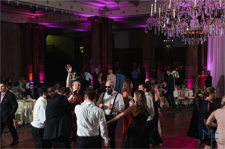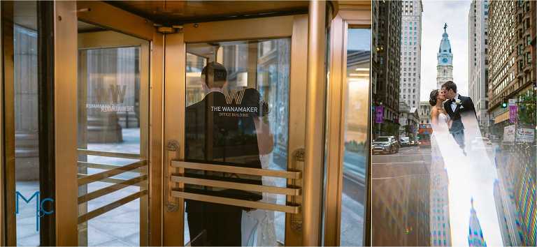 After the ceremony they exited to a crazy amount of bubbles and cheering!  Then we were off to Philly to take a stroll around city hall from their venue in the Wanamaker building. On the 9th floor of the Wanamaker building is home to… The Crystal Tea room: one of the most impressive venues in philly. The wooden architecture, crystal chandeliers and the open spaces lend for a great party space!  Kate + Rich just rocked it and we had so much fun taking photos of you guys and your families and friends.  There’s a lot of love in these photos:) Enjoy!