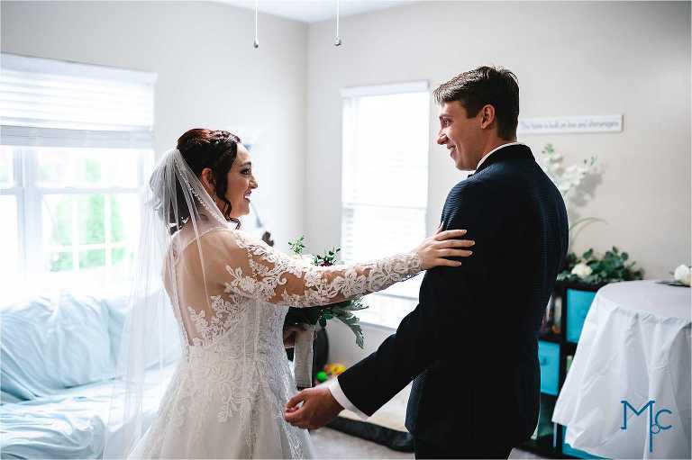 Schuyler & Clark are another one of our amazing couples that were affected by the pandemic. They chose to hold an intimate backyard ceremony and dinner on their original wedding date and postpone the reception until 2021. These micro weddings are honestly becoming some of our favorites. It’s so special to see how much people can put together to make a wedding day special, however small it is. Walking into their house filled with balloons, food, candles, and flowers was like walking into a well designed and catered event. We did the whole shebang, starting with Schuyler getting ready, to their first look in the living room.