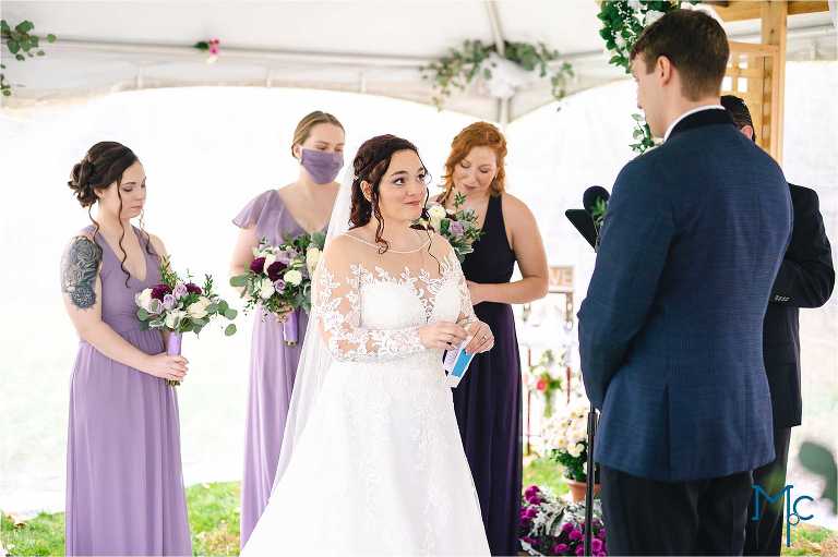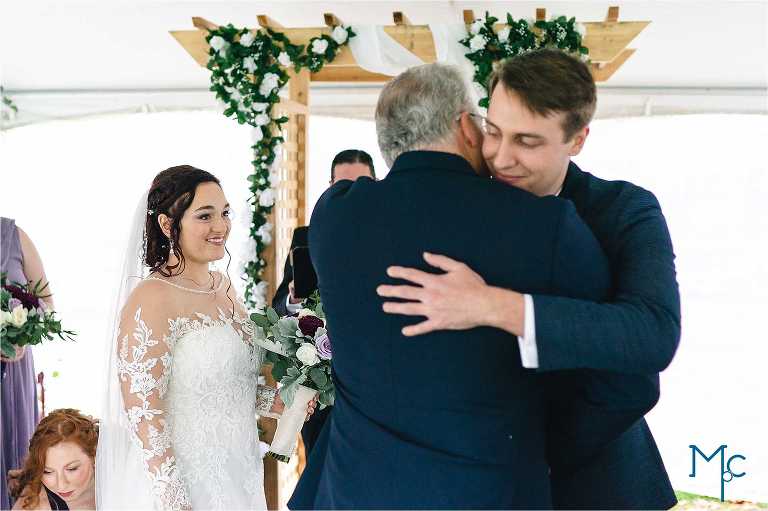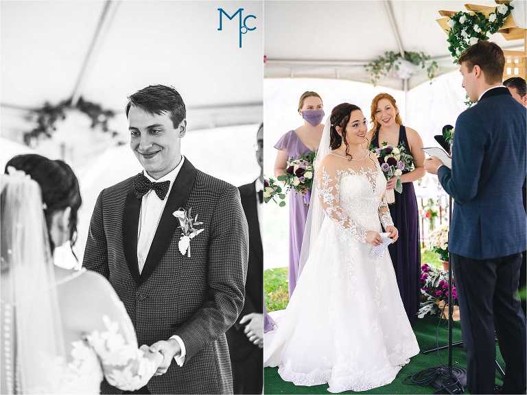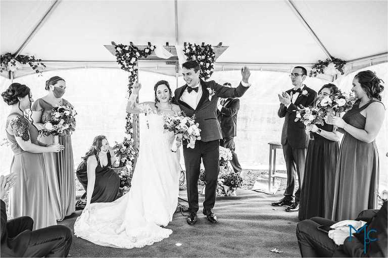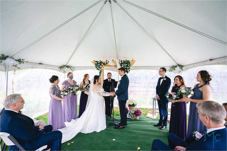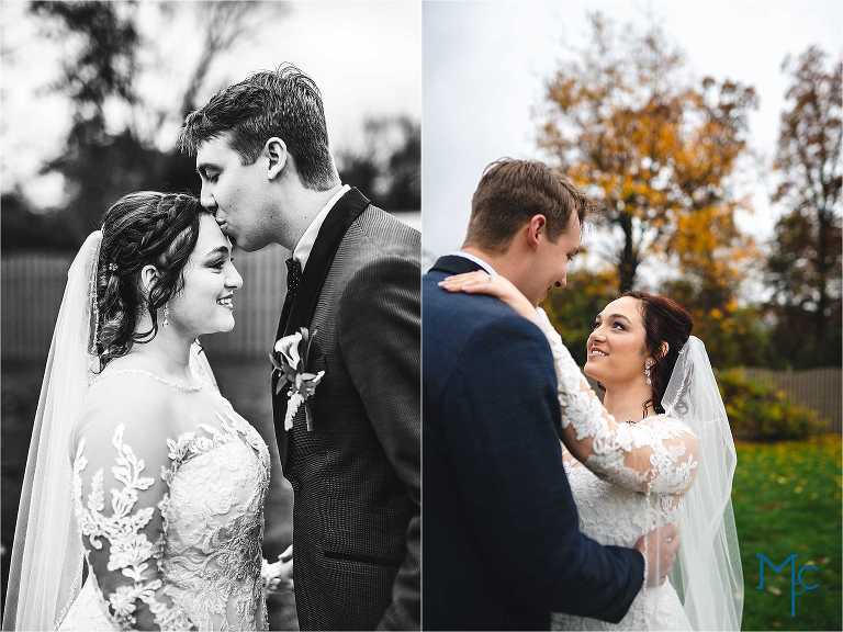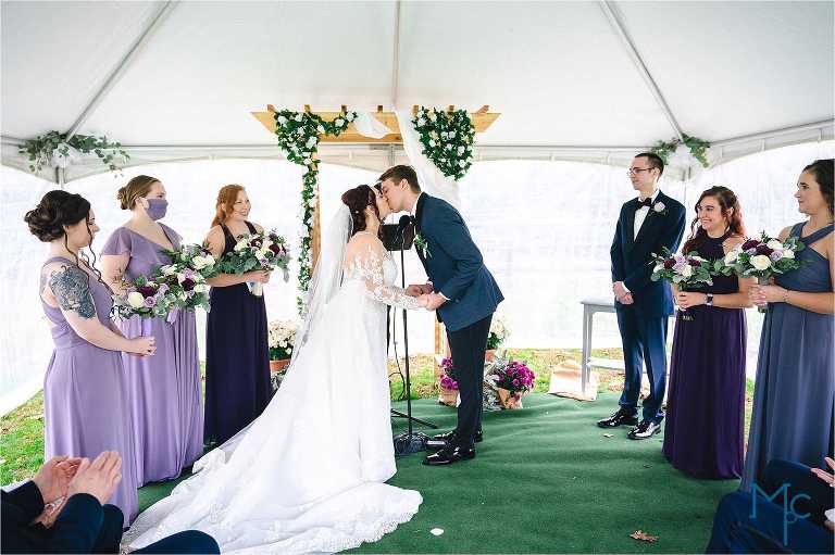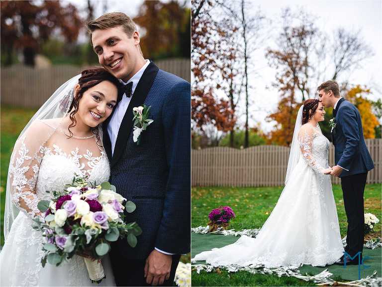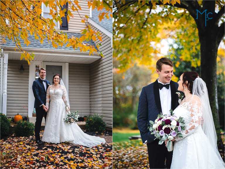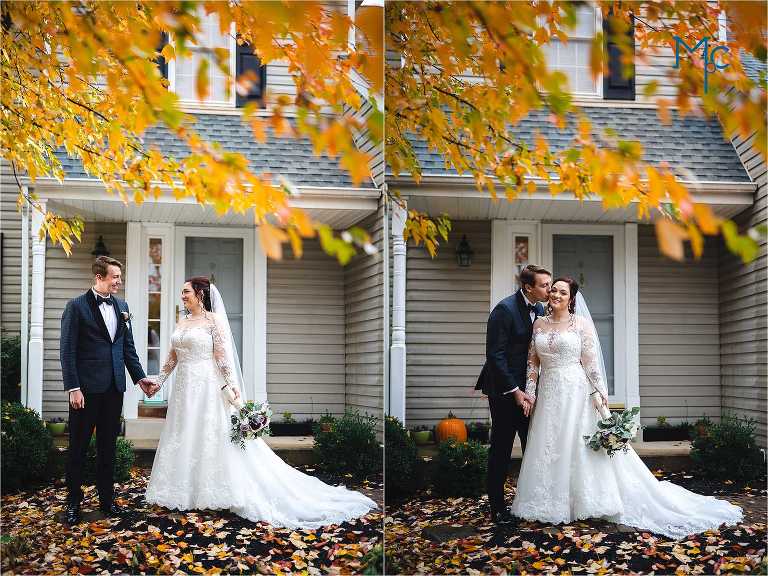 They were married in the backyard on a cool fall day with just enough color hanging on to the trees outside of their house to take photos near. They had their first dance and parent dances inside too. I love these home weddings, it just adds a sentiment that you can remember daily. We get to do it all over again in 2021 and we can’t wait to party it up with Schuyler & Clark!