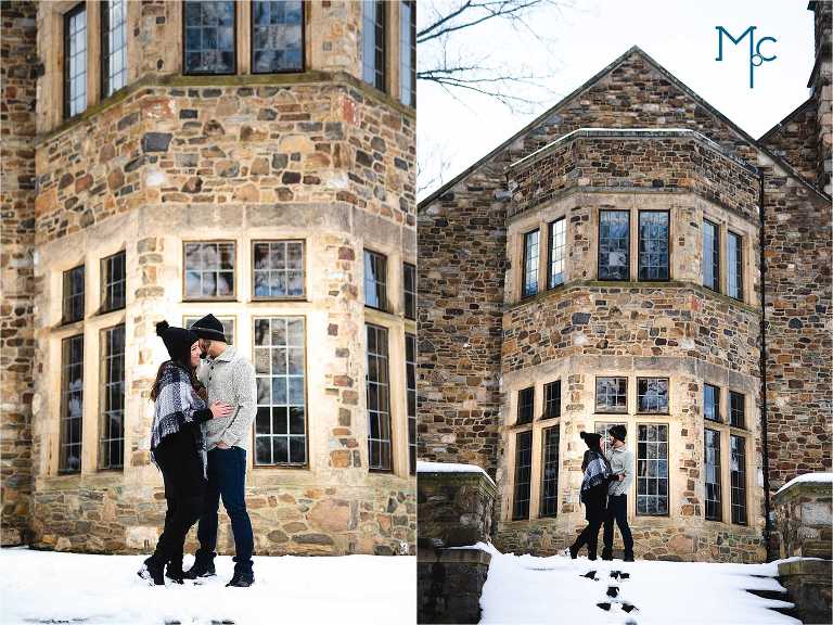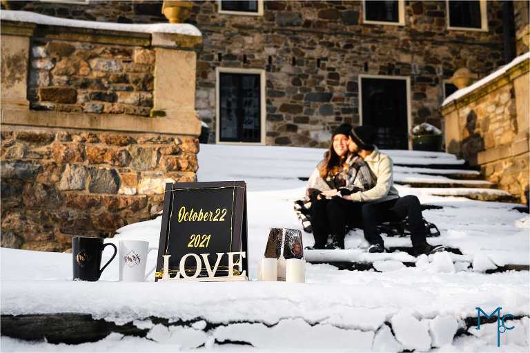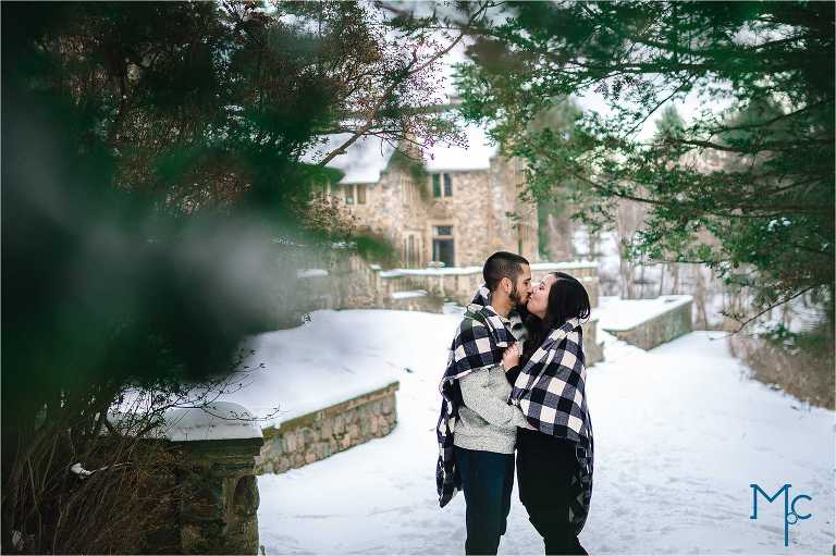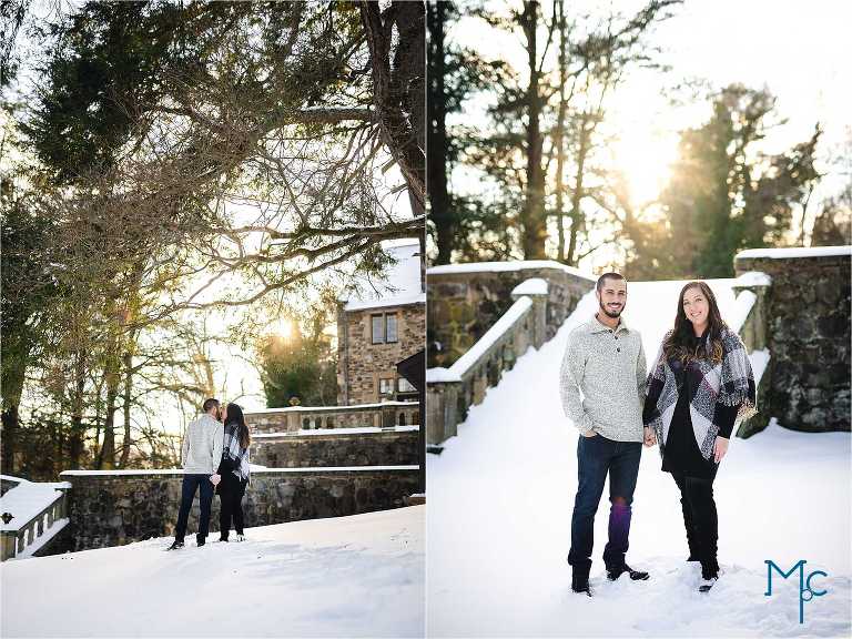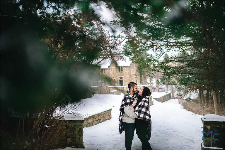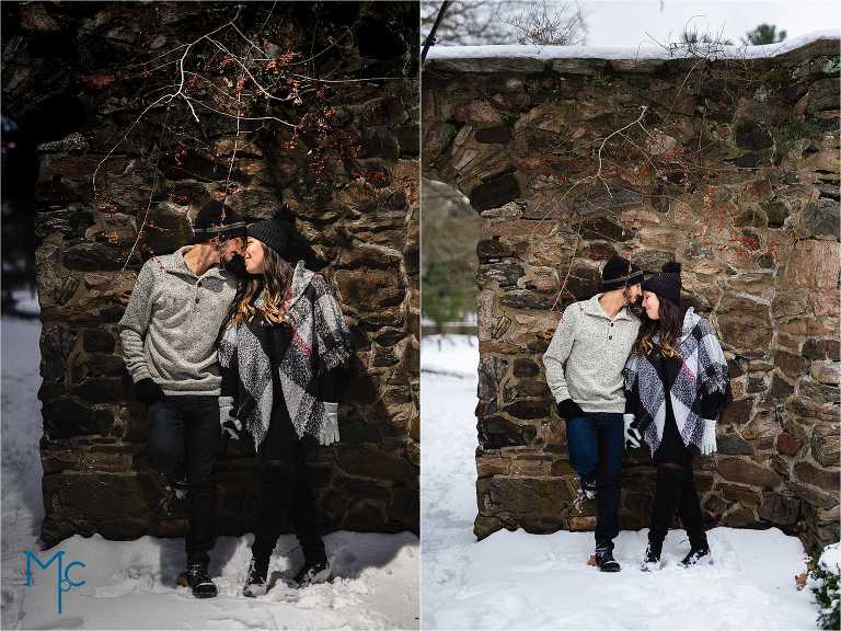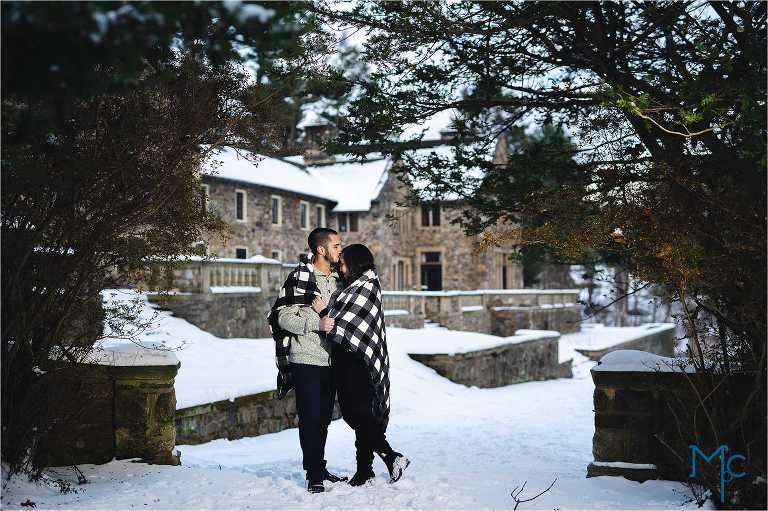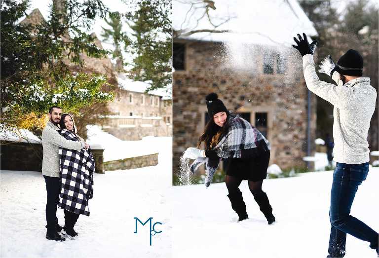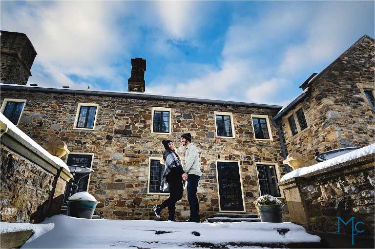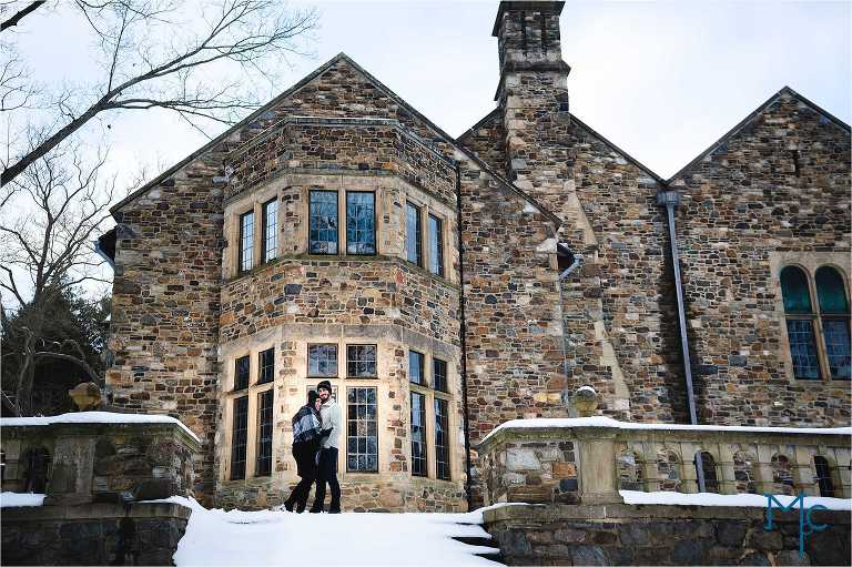 We were so excited to get to work with them under snowy conditions. Everything looked extra magical at a snow-blanketed Parque at Ridley Creek Manion. Starting out in the back of the house with the beautiful stonework, to a snowball fight to a little hike back further into the woods, we had a blast with Shoshana & Mike. We can not wait to celebrate your wedding day!