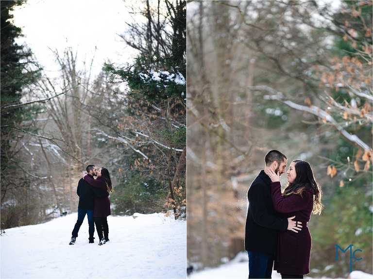 Shoshana & Mike are ADORABLE. Both have the sweetest demeanor and fun-loving spirit. This pair met at mutual friends, being in different relationships at the time, it wasn’t until a few years later they were able to reconnect and spark up a romance. Their first date was during a snowfall so how fitting that it had snowed right before their engagement photos! Mike had proposed last Christmas in front of her family who was absolutely floored.